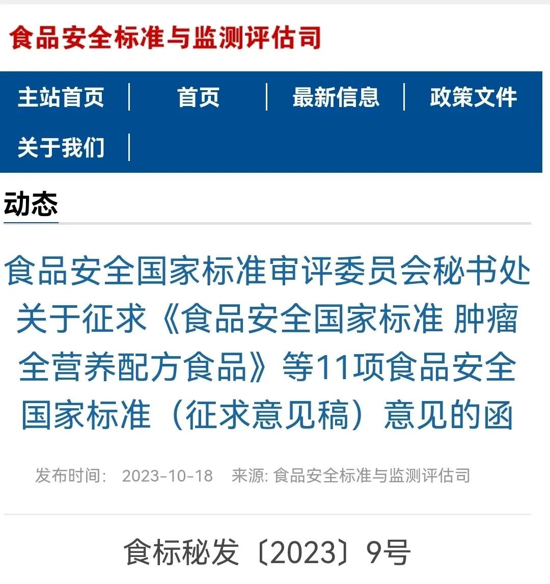 各有關(guān)單位: ? ? ? 根據(jù)《食品安全法》及其實施條例規(guī)定,我委組織起草了《食品安全國家標準腫瘤全營養(yǎng)配方食品》等11項食品安全國家標準和修改單(征求意見稿),現(xiàn)向社會公開征求意見。請于2023年12月15日前登錄食品安全國家標準管理信息…